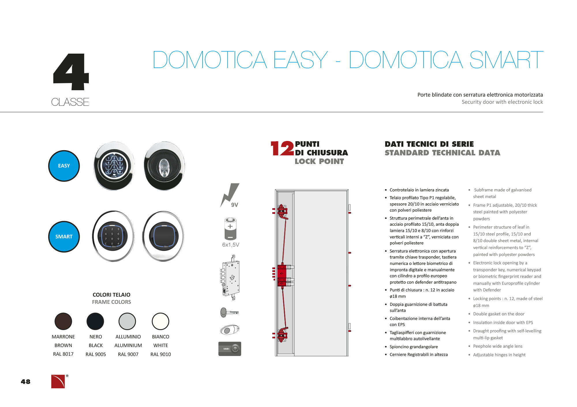 The doors model DOMOTICA EASY and model DOMOTICA SMART are certified burglar-proof in CLASS 4.